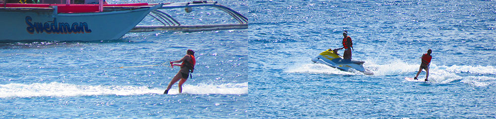セブ島の海をスリリングかつ爽快に駆け抜けるジェットスキー。セブ島なら船舶免許が無くてもジェットスキーを自分で運転することができます。