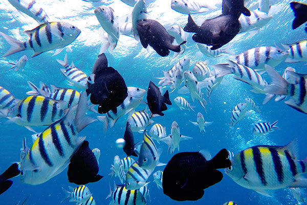海の中では、豊富な種類のカラフルな魚たちが迎えてくれます。目にも鮮やかな魚たちの中を泳げば、まるで魚気分!?